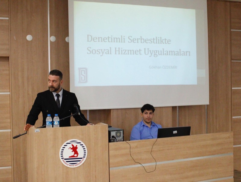 Ondokuz Mayıs Üniversitesi Sağlık Bilimleri Fakültesi Sosyal Hizmet Bölümü tarafından düzenlenen konferansta, Samsun Denetimli Serbestlik Müdürü Sayın Mehmet OFLUOĞLU denetimli serbestlik sistemine ilişkin değerlendirmelerde bulundu.