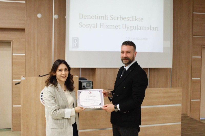 Konferansta, Samsun Denetimli Serbestlik Müdürlüğü Denetimli Serbestlik Uzmanı Gökhan ÖZDEMİR tarafından “Denetimli Serbestlikte Sosyal Hizmet Uygulamaları” konulu bir sunum gerçekleştirildi.